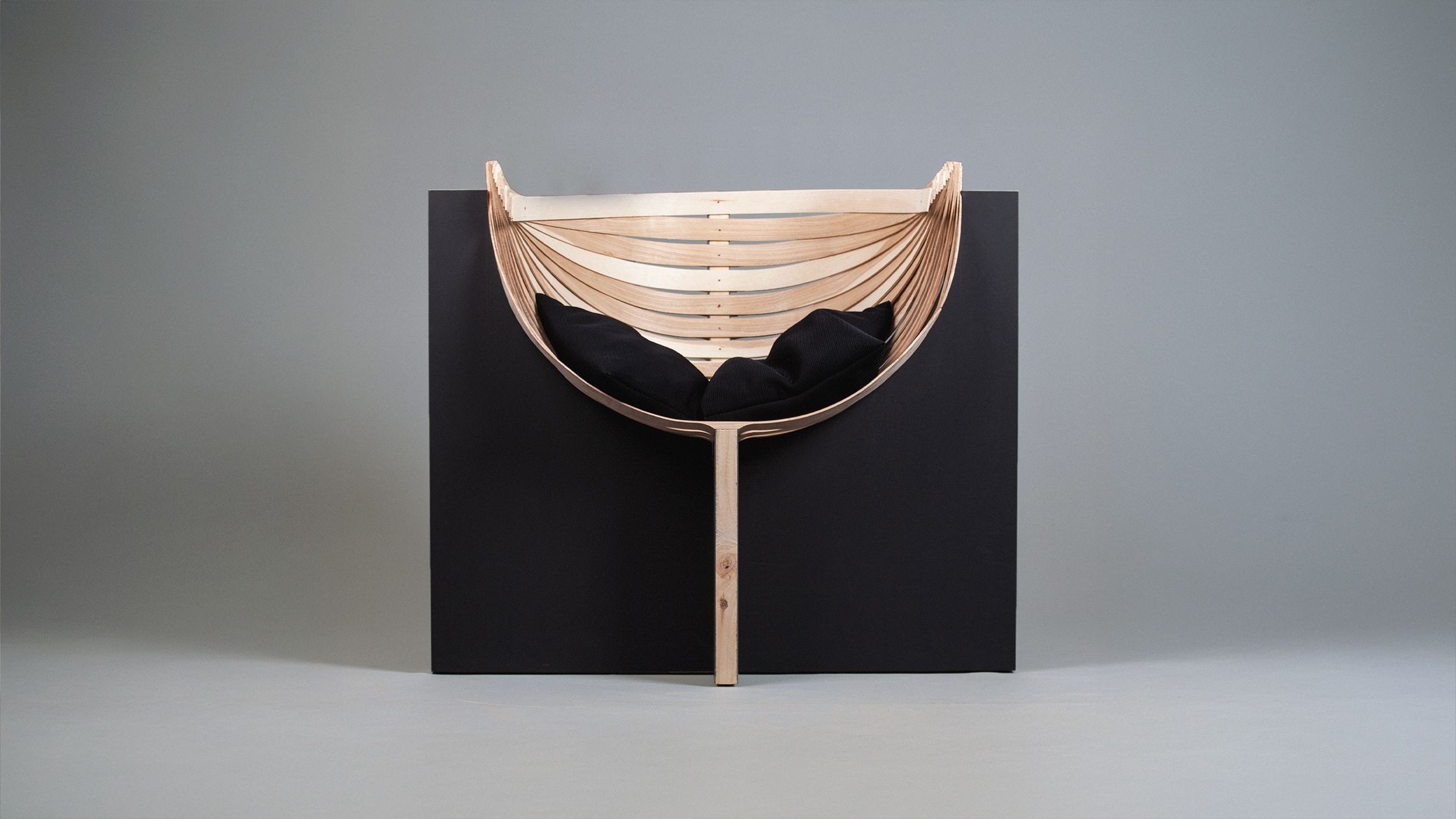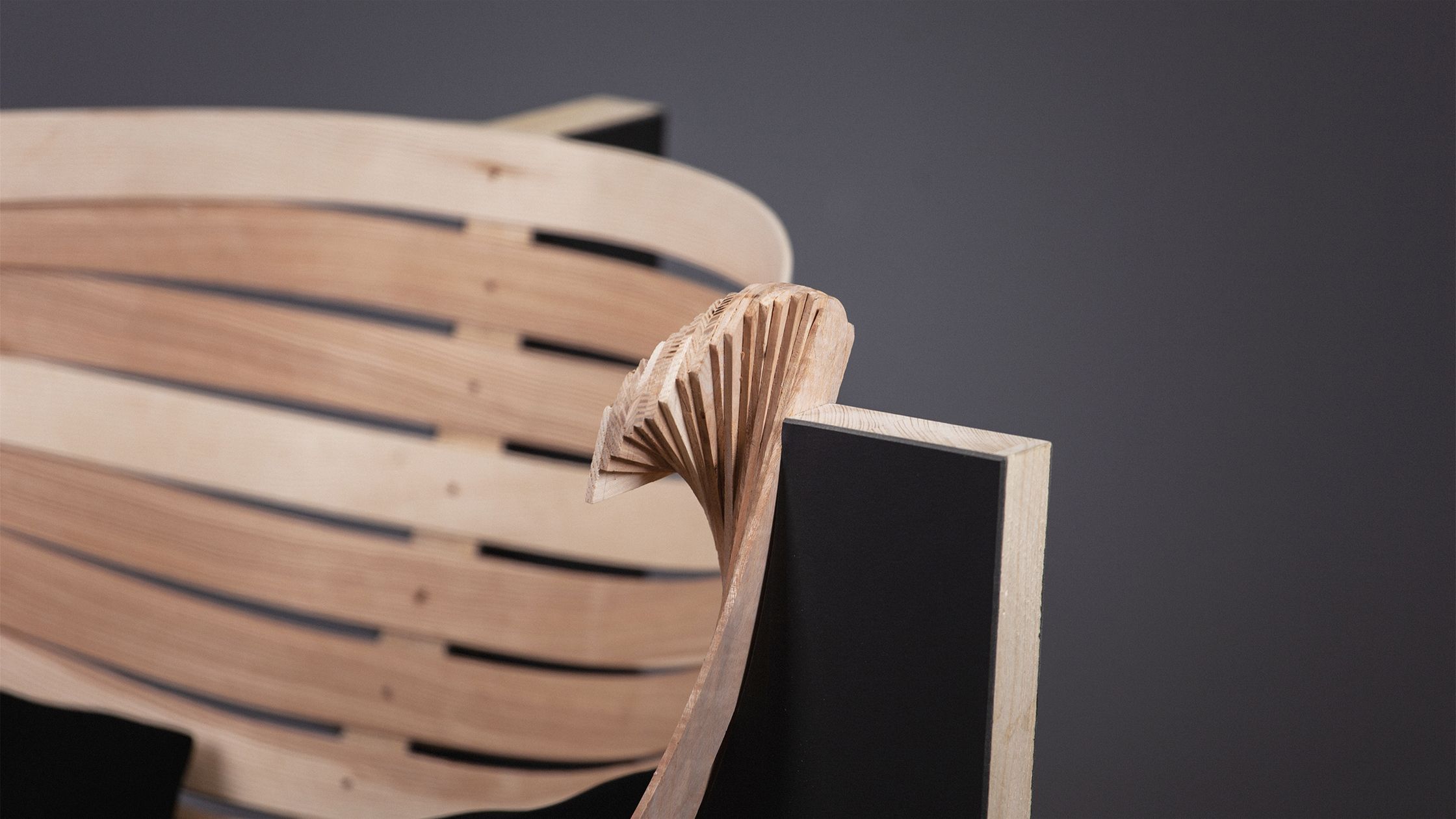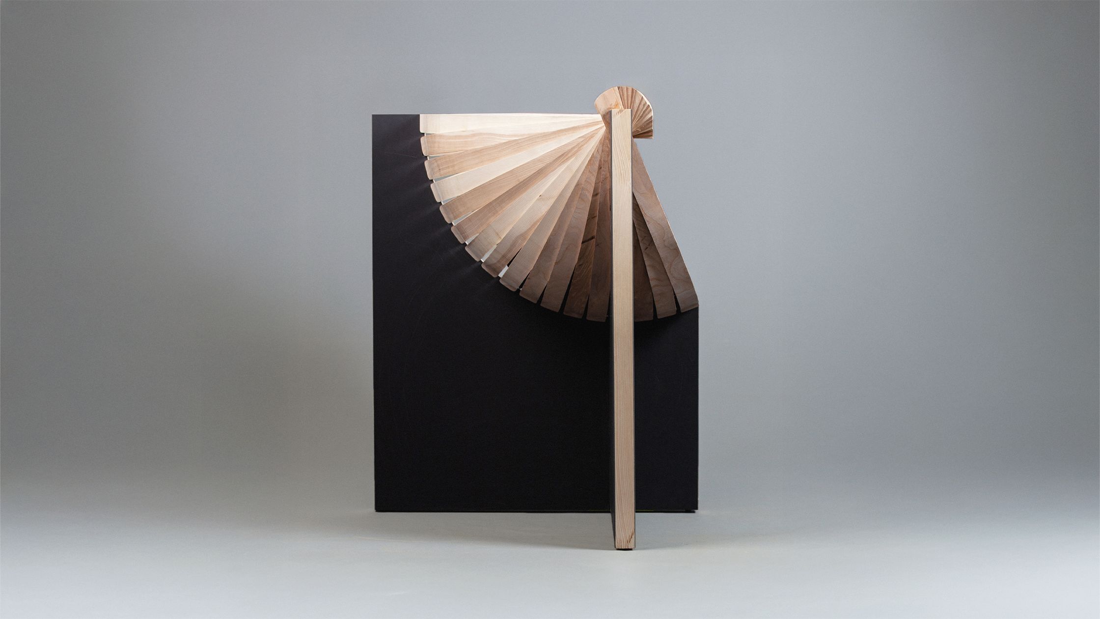 Drawing inspiration from Brutalist architecture, atlas is an armchair characterised by its raw structural honesty and contrasting geometries. The design combines the heavy, monolithic appearance of two three-layer boards with a rhythmic, radiating arrangement of ash wood slats.